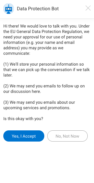 No entanto, quando a empresa tem uma audiência muito variada, especialmente com usuários com idades diferentes, não dá para assumir que todas as pessoas entenderão como se utiliza um chatbot. A empresa norte-americana de transporte ferroviário Amtrak optou por colocar no próprio bot a opção "About Julie", encaminhando o usuário a uma página onde explica qual a tecnologia por trás da assistente, como se comunicar com ela e quais serviços ela pode oferecer ao cliente.